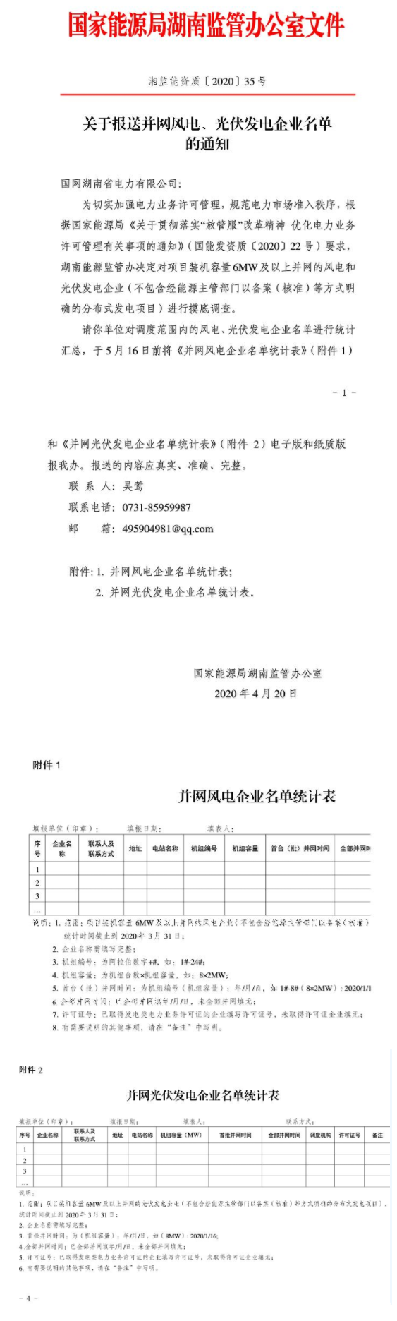 5月16日前報(bào)送 湖南發(fā)布關(guān)于報(bào)送并網(wǎng)風(fēng)電、光伏發(fā)電企業(yè)名單通知